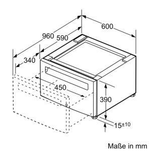 Podest mit Schublade zur platzsparenden Aufbewahrung Das Podest erhöht das Hausgerät für eine komfortablere Bedienung Mit Schublade zur platzsparenden Aufbewahrung Abmessungen: 400 x 600 x 570 mm Bitte prüfen Sie vorab die Kompatibilität mit Ihrem Gerät