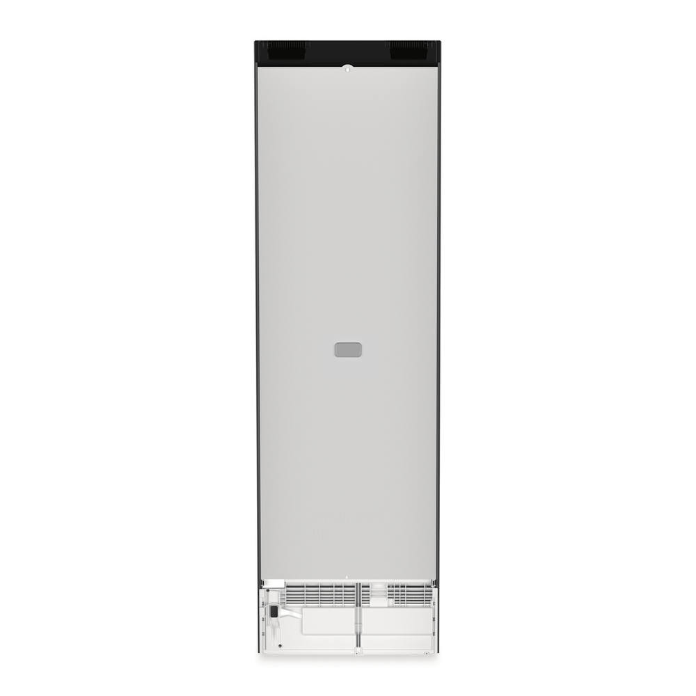 Kühlschrankinnenraum mit weißem Behälter und Beleuchtung. Sichtbar ist das „PowerCooling“-System von LIEBHERR.
